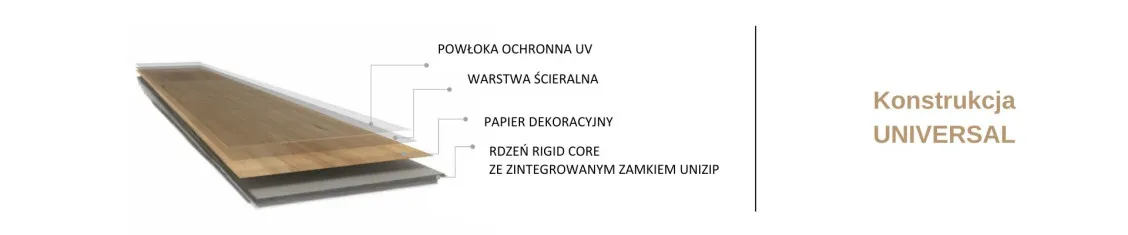Kolekcja Universal Rigid Core sprawdzi się w salonie, sypialni, kuchni, a nawet w łazience czy przedpokoju. Dzięki odporności na wilgoć i uszkodzenia mechaniczne panele świetnie radzą sobie w miejscach narażonych na częste użytkowanie. To wybór, który łączy estetykę i praktyczność w całym domu, bez kompromisów.